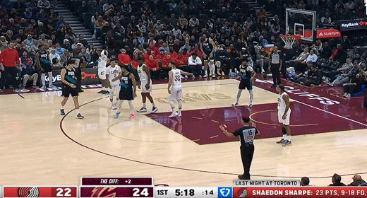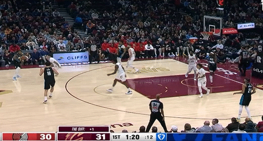 第二节骑士杰伦-泰森拿下6分,开拓者阿夫迪亚拿下12分,半场结束骑士58-68落后开拓者