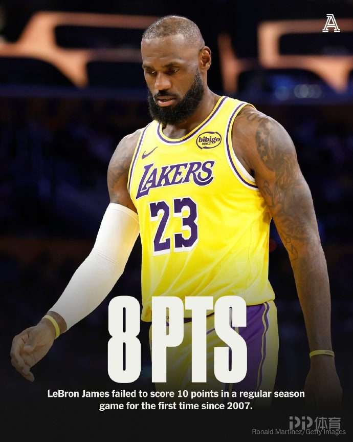 此役,詹姆斯前6投全失,全场比赛出战36分钟,17投仅4中,三分球5中0,得到8分6板并送出11次助攻,没有失误。