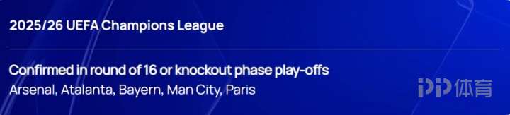 欧冠联赛阶段6轮战罢,欧足联官方发文,已有5队确定晋级16强或淘汰赛附加赛。
