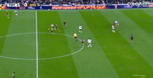 第43分钟,西蒙斯前场抢断直接一条龙突入禁区,面对包夹封堵低射破门!热刺2-0布伦特福德